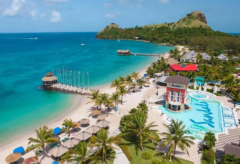 Sandals Grande St. Lucian, An idyllic all-inclusive resort located on its very own peninsula, is often described as the "closest vacation to a picture-perfect postcard."